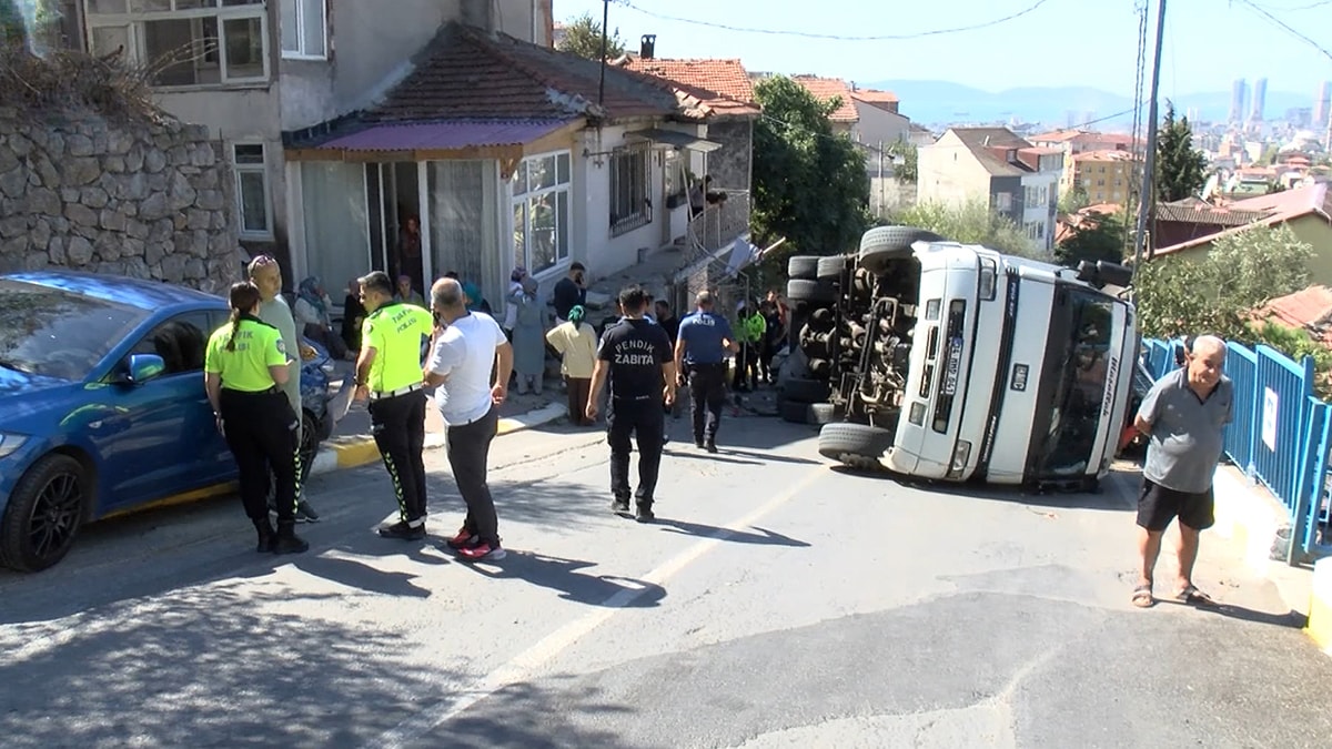 Pendik'te traktör yüklü kamyon, gecekondu ve iki otomobile çarparak devrildi