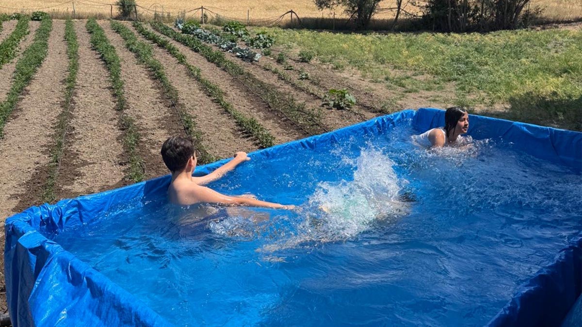 Tokat’ın merkeze bağlı Bedirkale köyünde yaşayan 64 yaşındaki Mustafa Varol, sıcak yaz günlerinde tatil için gelen torunlarını serinletmek için sıra dışı bir yöntem geliştirdi. Varol, traktörünün römorkunu branda ile kaplayarak suyla doldurdu ve torunları için adeta bir "taşra havuzu" yaptı.