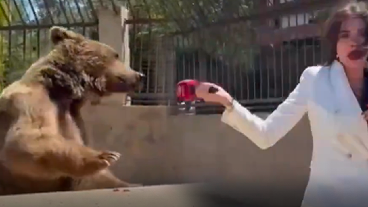 Ayıyla röportaj yapan muhabir saldırınca kaçtı: O anlar gündem oldu