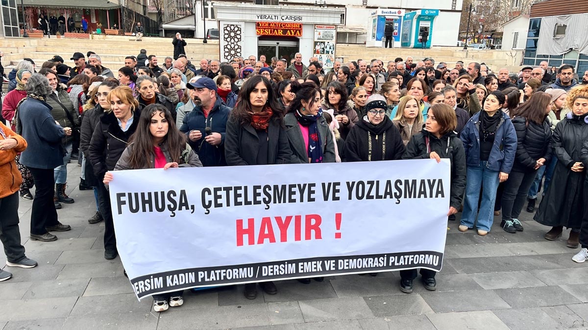 Tunceli’de Dersim Kadın Platformu üyesi kadınlar, kentte bir süredir gündemde olan fuhuş çetesi iddialarına karşı “Fuhşa, çeteleşmeye, yozlaşmaya hayır” diyerek yürüyüş düzenledi. Sanat Sokağı’nda yapılan eylemde, kadınların hedef alındığı iddiaların hızla ve şeffaf biçimde araştırılması çağrısında bulunuldu