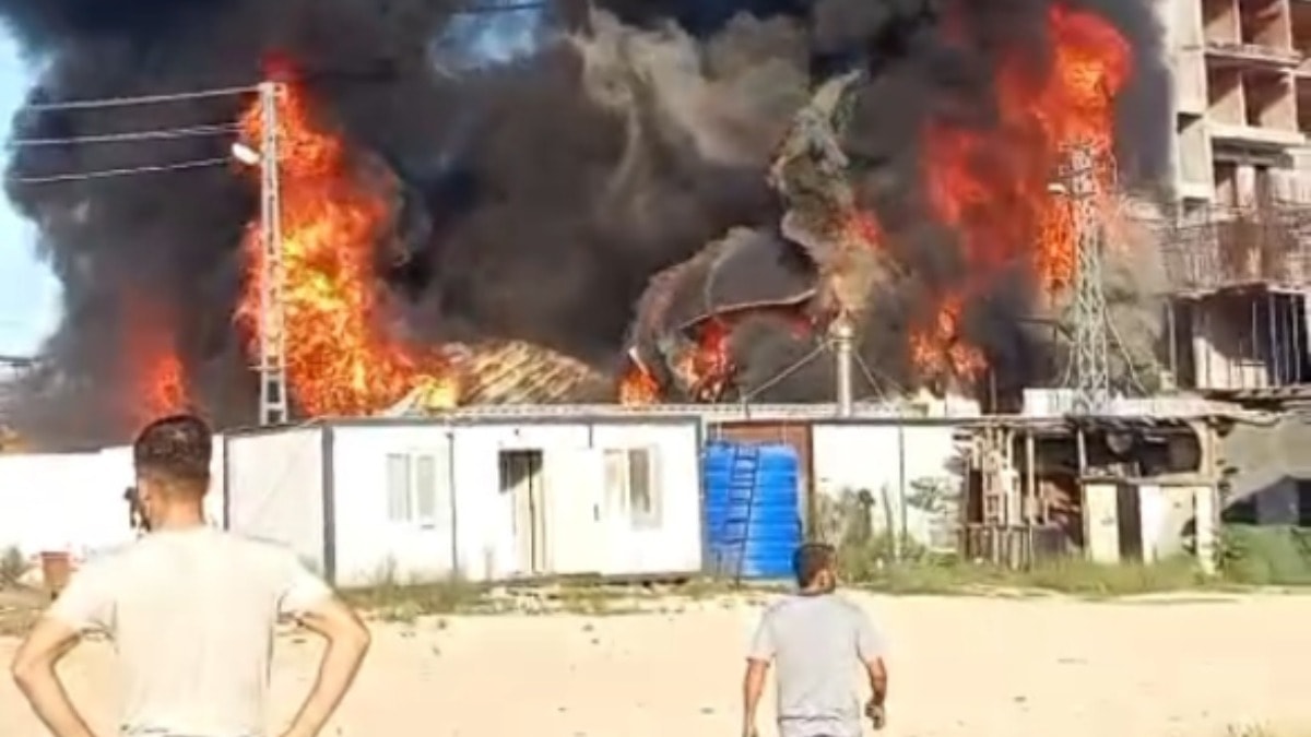 Hatay'da işçilerin kaldığı konteynerler alev alev yandı