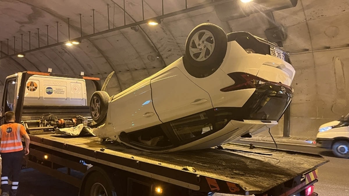 Kocaeli’de tünelde meydana gelen kazada otomobil takla attı