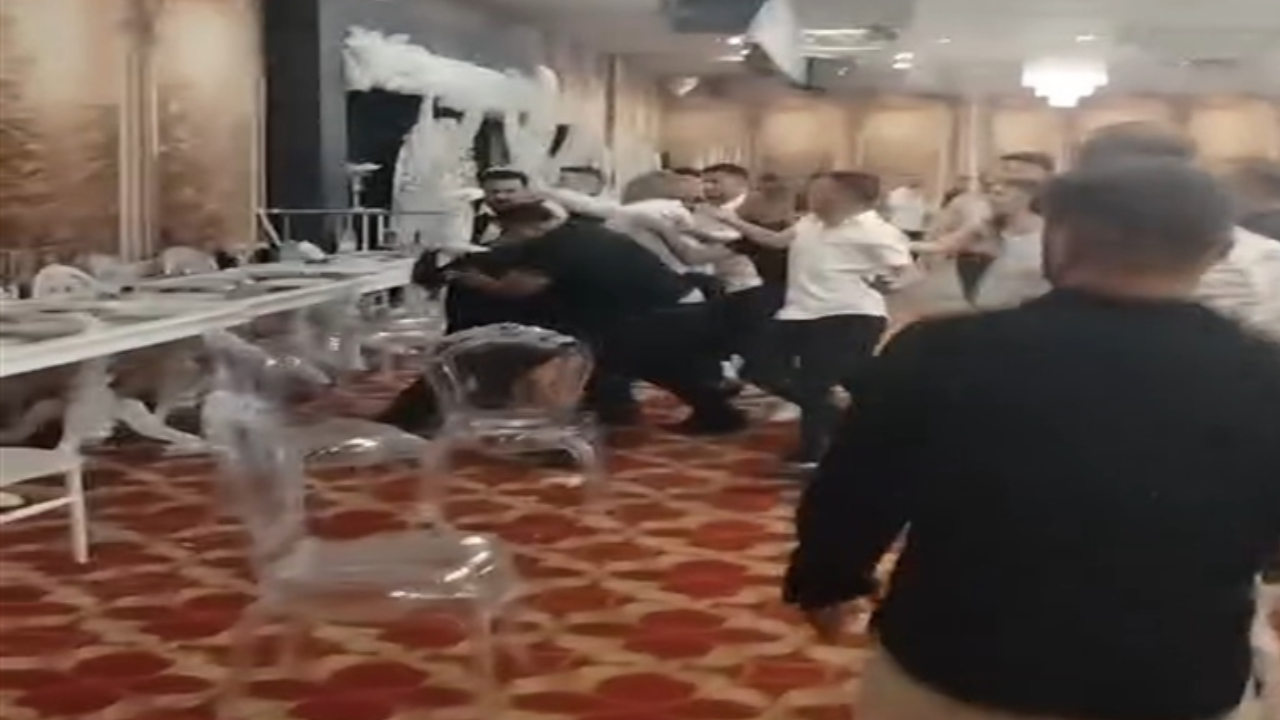 Adana'da bir düğün salonunda çıkan kavga, cep telefonu kamerasıyla kaydedildi. Kavgaya karışan çok sayıda kişi gözaltına alındı.