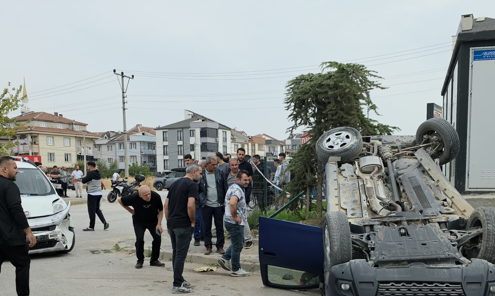 Bursa'nın İnegöl ilçesinde hafif ticari araçla otomobilin çarpışması sonucu 3 kişi yaralandı.