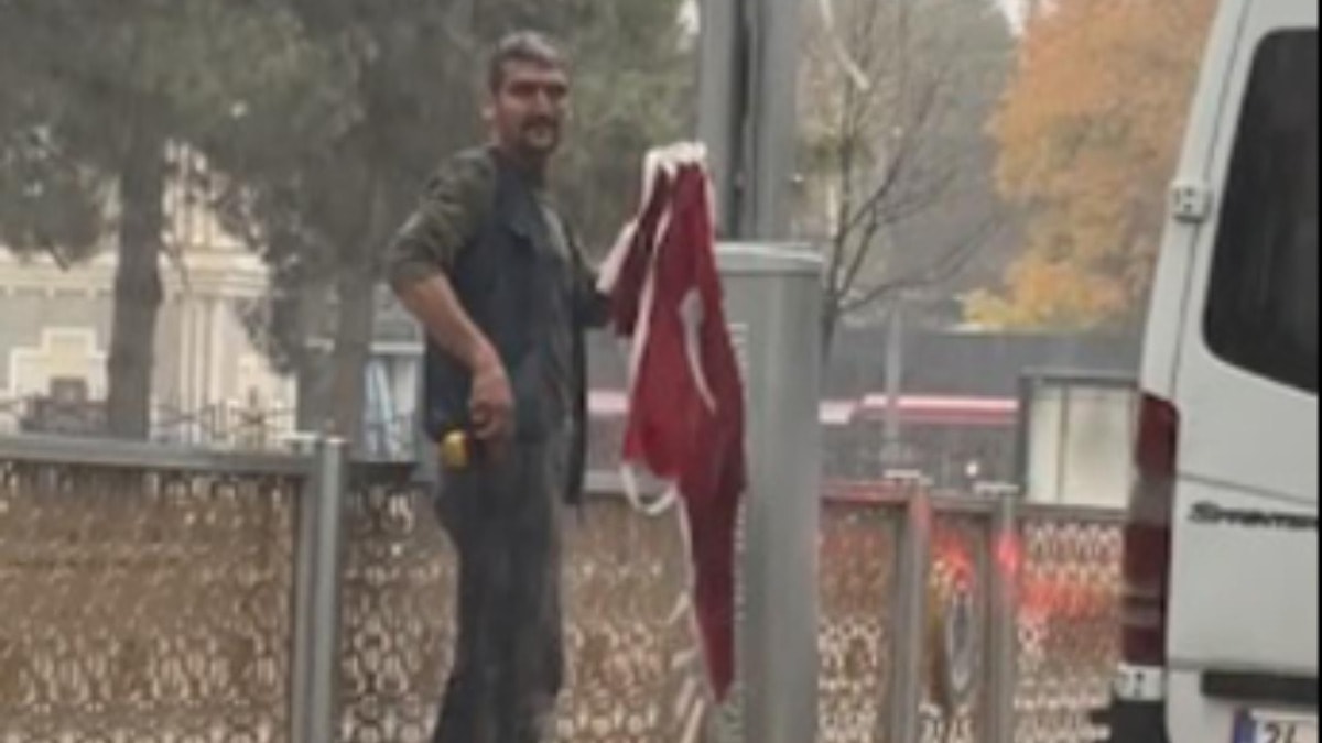 Erzincan’da bir vatandaşın yağmur altında yola düşen Türk bayraklarını toplaması, çevredekilerin takdirini topladı.