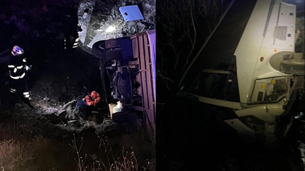Maden işçilerini taşıyan midibüs uçuruma yuvarlandı: 15 yaralı