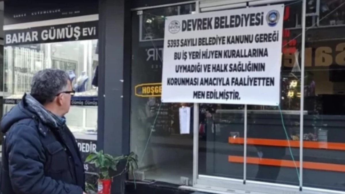 Zonguldak’ın Devrek ilçesinde sağlığa aykırı üretim yaptığı gerekçesiyle mühürlenen pideciye “5393 Sayılı Belediye Kanunu gereği bu işyeri hijyen kurallarına uymadığı ve halk sağlığının korunması amacıyla faaliyetten men edilmiştir” yazısı asıldı.