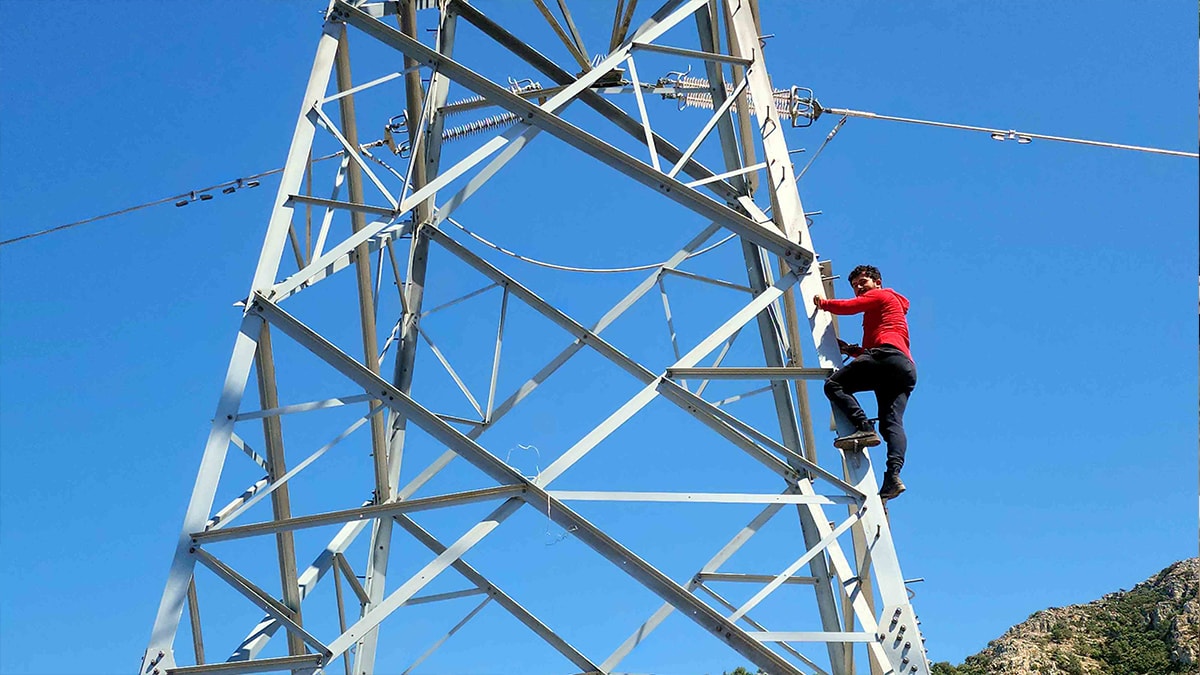 Muğla’nın Bodrum ilçesinde yüksek gerilim hattı kablolarını çeken ve paralarını bir aydır alamayan işçi yüksek gerilim direğine çıkarak süresiz eylem başlattı. İşçiler 450 metre rakımlı dağın tepesinde 40 derece sıcak altında yüksek gerilim hattı direğine sırasıyla çıkarak süresiz eylem başlattı. İşçiler yaşadıklarını SÖZCÜ’ye anlattı.