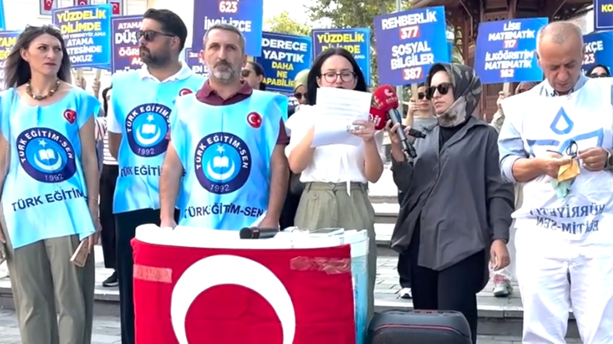 Ataması yapılmayan öğretmenler, 2024 KPSS’de adil branş dağılımlı ek atama talebiyle basın açıklaması yaptı. Öğretmenler, “Sadece bazı branşlara ayrıcalık tanınırken, bizler perişan olduk" dedi.