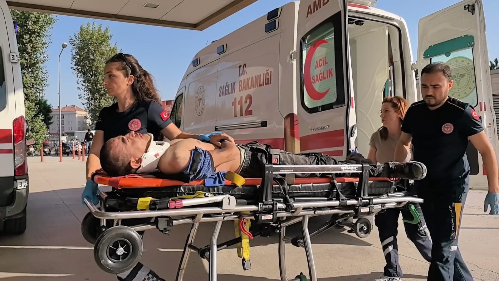Bursa'nın İnegöl ilçesinde çalıştığı cam fabrikasında taşıma bantları arasına sıkışan Mossa A. (21), ağır yaralandı.