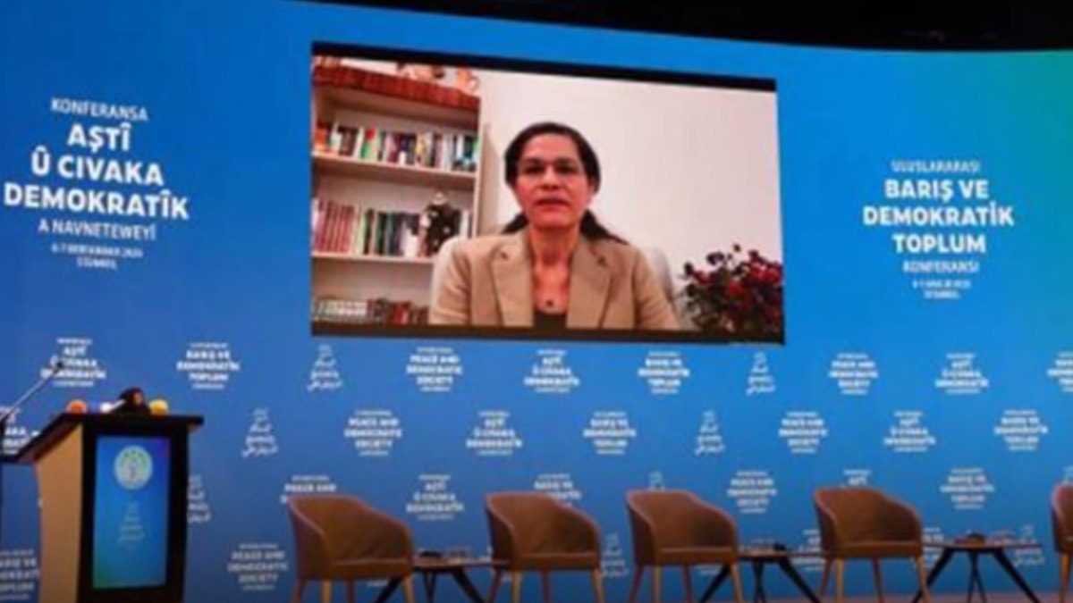 İktidarın gelmesine izin vermediği, kırmızı bültenle aranan terörist İlham Ahmed uluslararası konferansa telekonferansla bağlanıp, açılım sürecine övgü yağdırdı.
