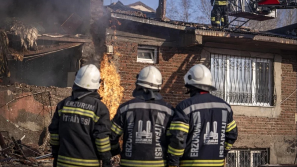 Erzurum'da doğal gaz patlaması: 2 katlı binanın bir kısmı çöktü