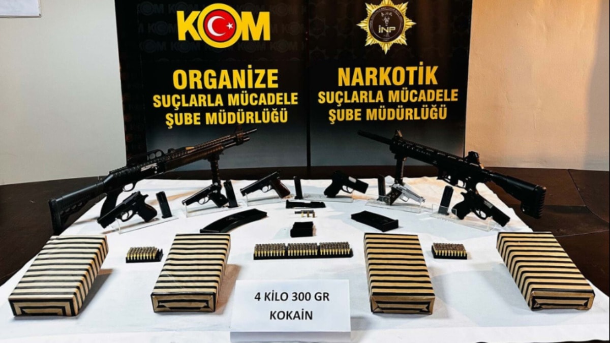 İzmir’de düzenlenen operasyonda 4,3 kilo kokain, 6 tabanca, 2 av tüfeği ve 246 mermi ele geçirildi; gözaltına alınan 7 şüpheli tutuklandı.