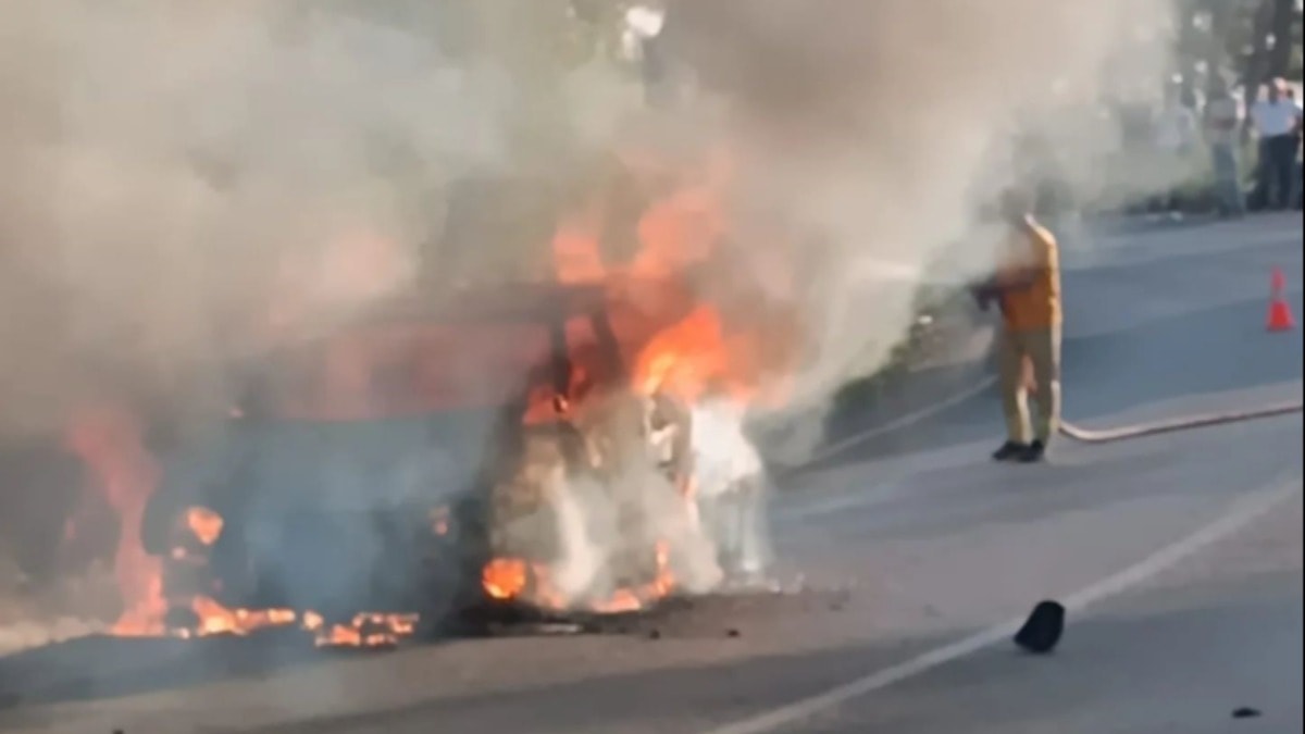 Otomobil bir anda alev aldı, ormana sıçramadan söndürüldü