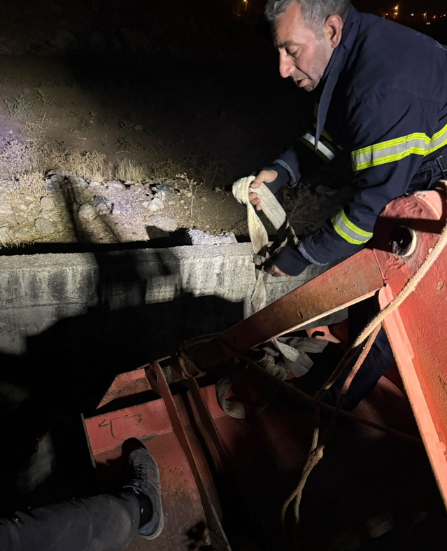 Siirt'te su kanalına düşen inek kurtarıldı