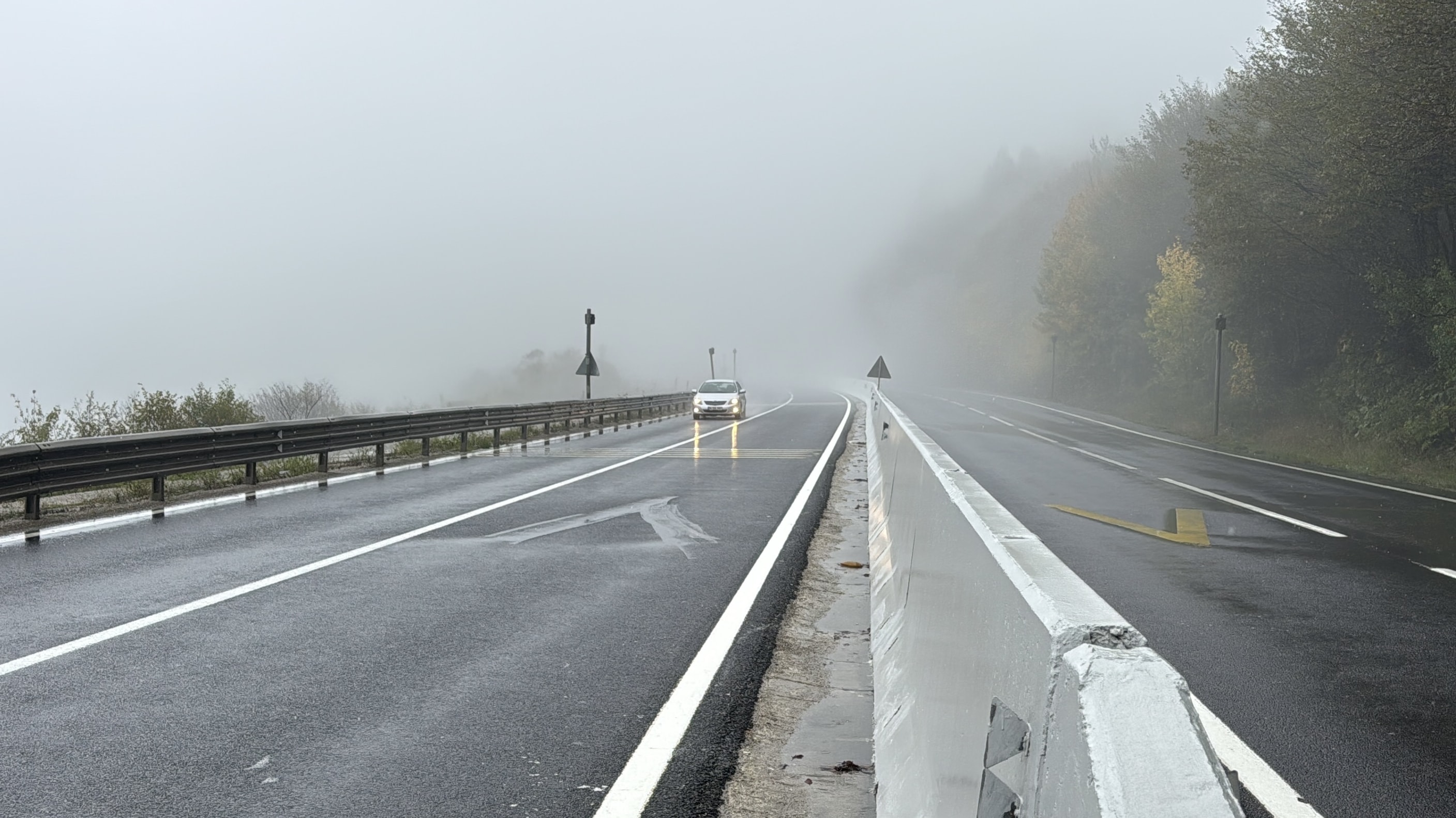 Ankara ve İstanbul arasında ulaşımı sağlayan önemli güzergahlardan D-100 kara yolunun Bolu Dağı kesiminde sis ve sağanak görüş mesafesini düşürdü.