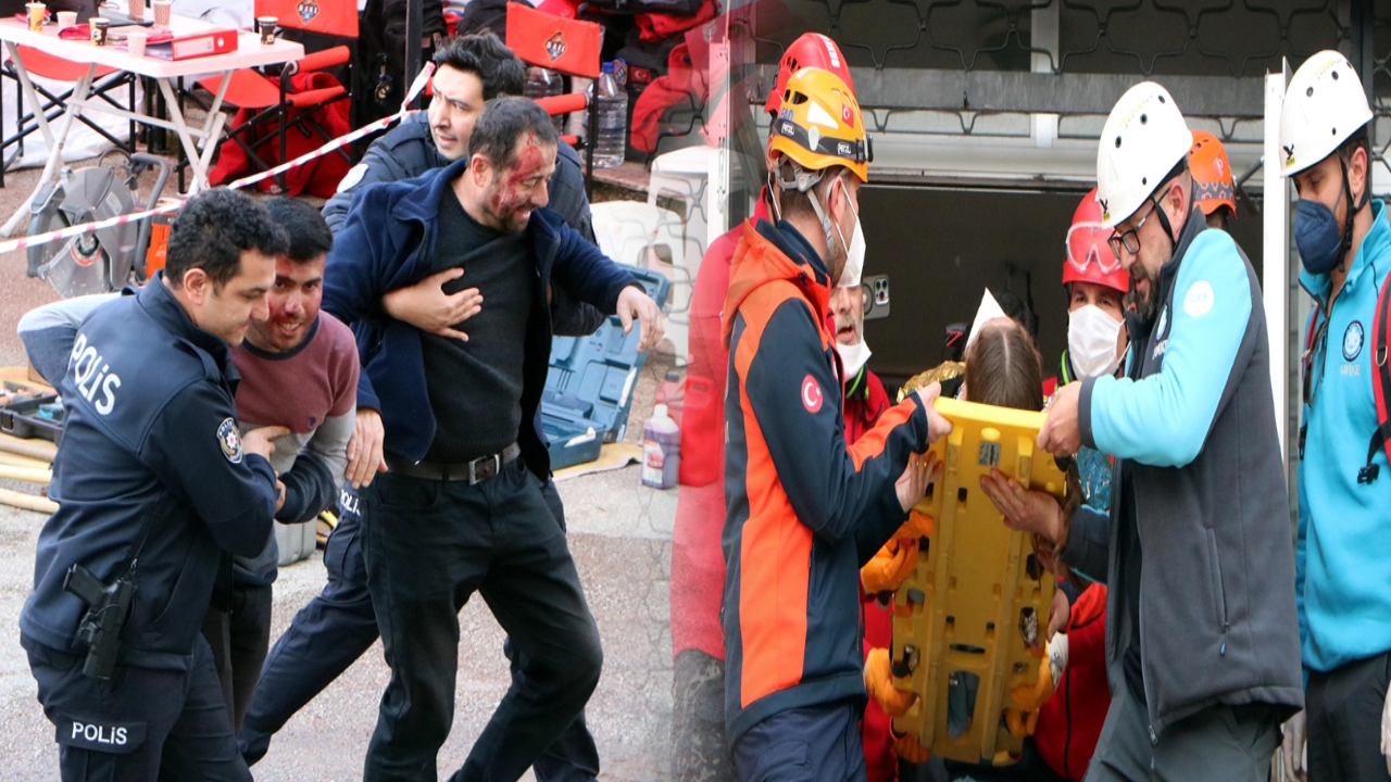 Deprem tatbikatında yaralı yakınlarının feryatları gerçeği aratmadı