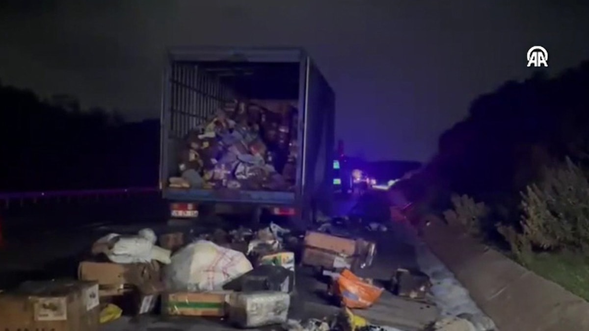 Kuzey Marmara Otoyolu’nun Eyüpsultan Çiftalan Sapağı mevkisinde malzeme yüklü bir kamyonda çıkan yangın, itfaiye ekiplerinin müdahalesiyle kontrol altına alındı.