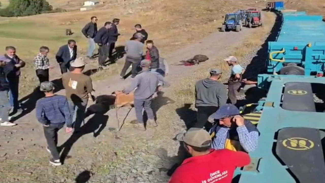 Kars’ın Arpaçay ilçesinde yük treni rayların üzerinden geçen büyükbaş sürüsüne çarptı. Kazada 5 inek öldü