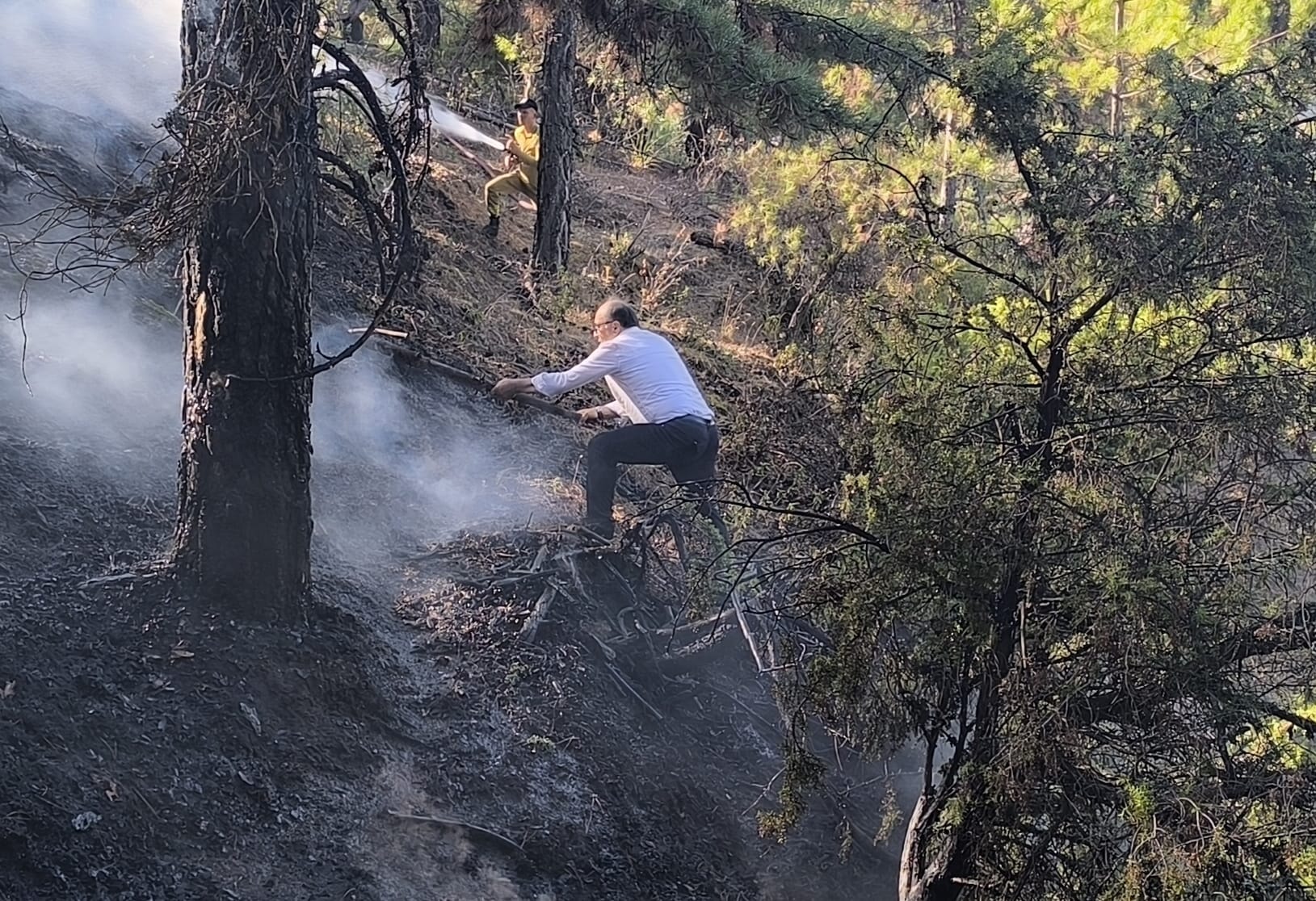 CHP’li Başkan yangının ortasında kaldı: Çalı çırpıyla söndürmeye çalıştı