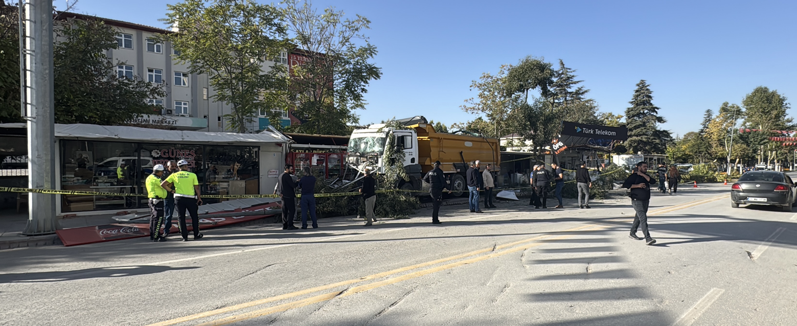 Malatya'nın Yeşilyurt ilçesinde freni arızalanan kamyon, yol kenarındaki 7 konteyner iş yerine çarptı.
