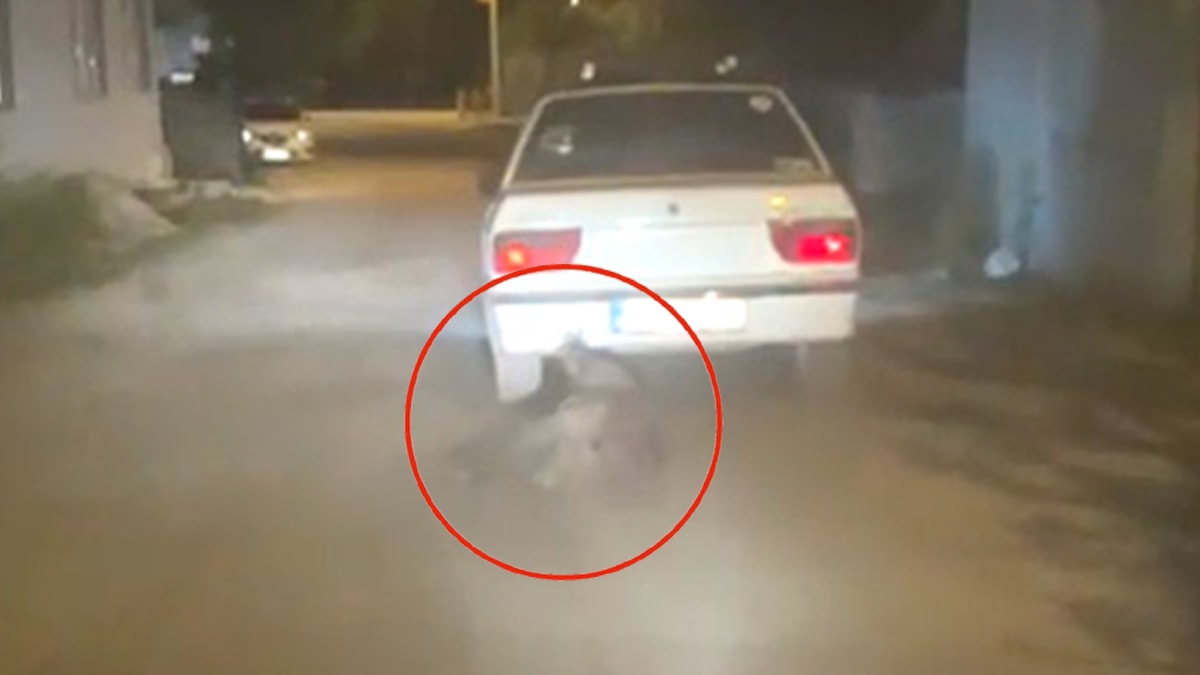 Tokat'ta korkunç görüntü: Yaban domuzunu otomobilin arkasına bağlayıp sürükledi