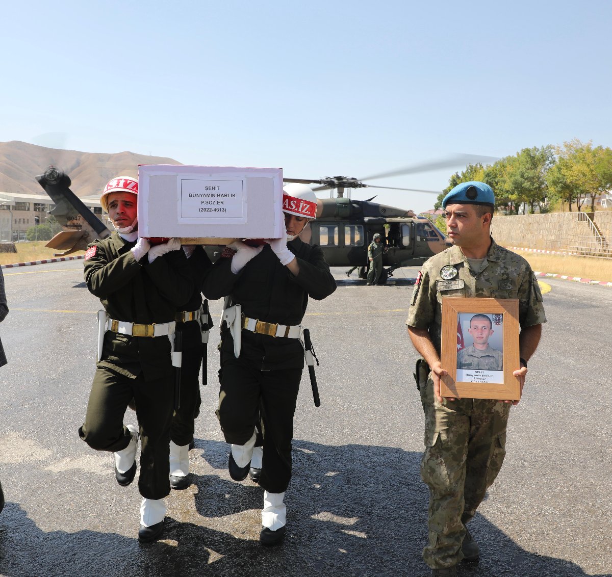 Şehit olan Piyade Sözleşmeli Er Bünyamin Barlık için İl Jandarma Komutanlığı'nda tören düzenlendi. Törene Bitlis Valisi Erol Karaömeroğlu, Hazine ve Maliye Bakan Yardımcısı Zekeriya Kaya, Belediye Başkan Vekili Gökhan Tokmak, 8'inci Kolordu Komutanı Tümgeneral Tamer Atay, İl Jandarma Komutanı Tuğgeneral Eyüp Subaşı, Emniyet Müdürü Ortaç Şekeroğlu, AKP Bitlis İl Başkanı Kadir Köstekçi, siyasi parti temsilcileri, şehit yakınları, polis ve askeri yetkililer ile kurum amirleri katıldı.