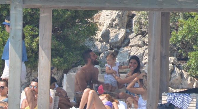 Aslıhan Doğan’ı öptükten sonra esneyerek kollarını açan ve mutluluk pozları veren Arda Turan yanlarındaki bir arkadaşlarını bebeğiyle de yakından ilgilendi.