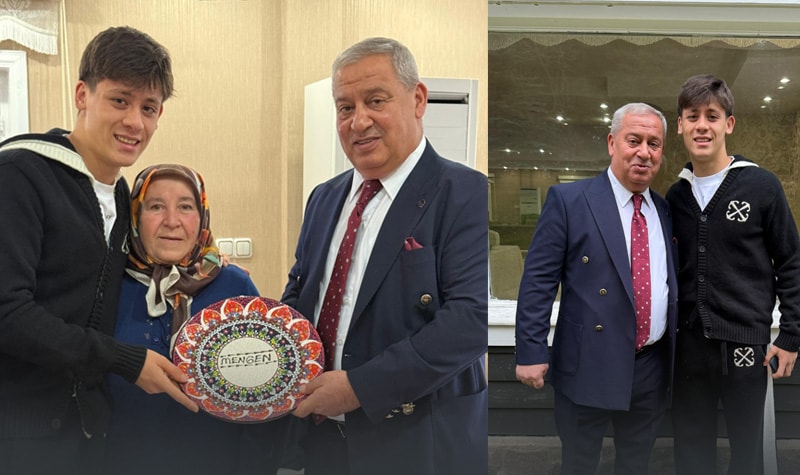 Aile büyükleriyle bir süre vakit geçiren Arda Güler, daha sonra Mengen Belediye Başkanı Vural Turan ile buluştu. Yıldız futbolcuyu belediye binasında ağırlayan Başkan Turan, Arda Güler'e ‘Mengen’ yazılı porselen tabak hediye etti. Arda Güler'in bu sabah kentten ayrıldığı öğrenildi.