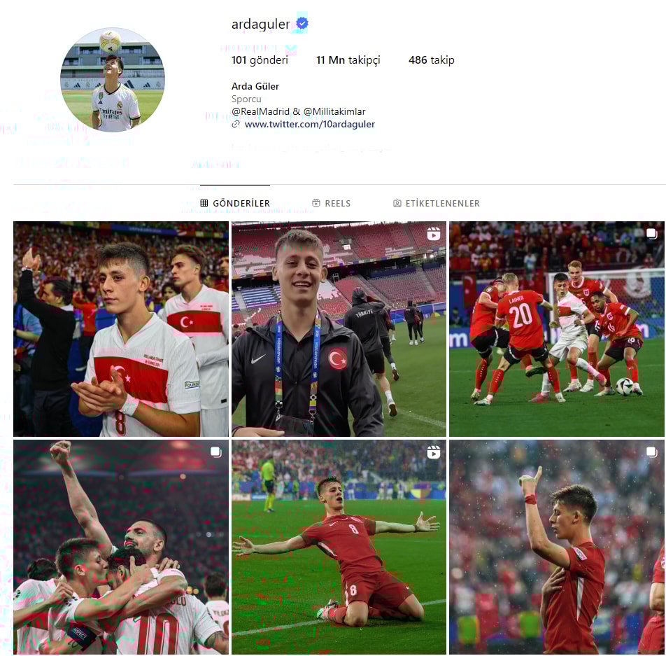 EURO 2024 başladıktan sonra 1 milyondan fazla yeni takipçi kazanan genç futbolcu, aktif Türk oyuncular arasında Instagram'da en fazla takipçisi olan isim oldu.