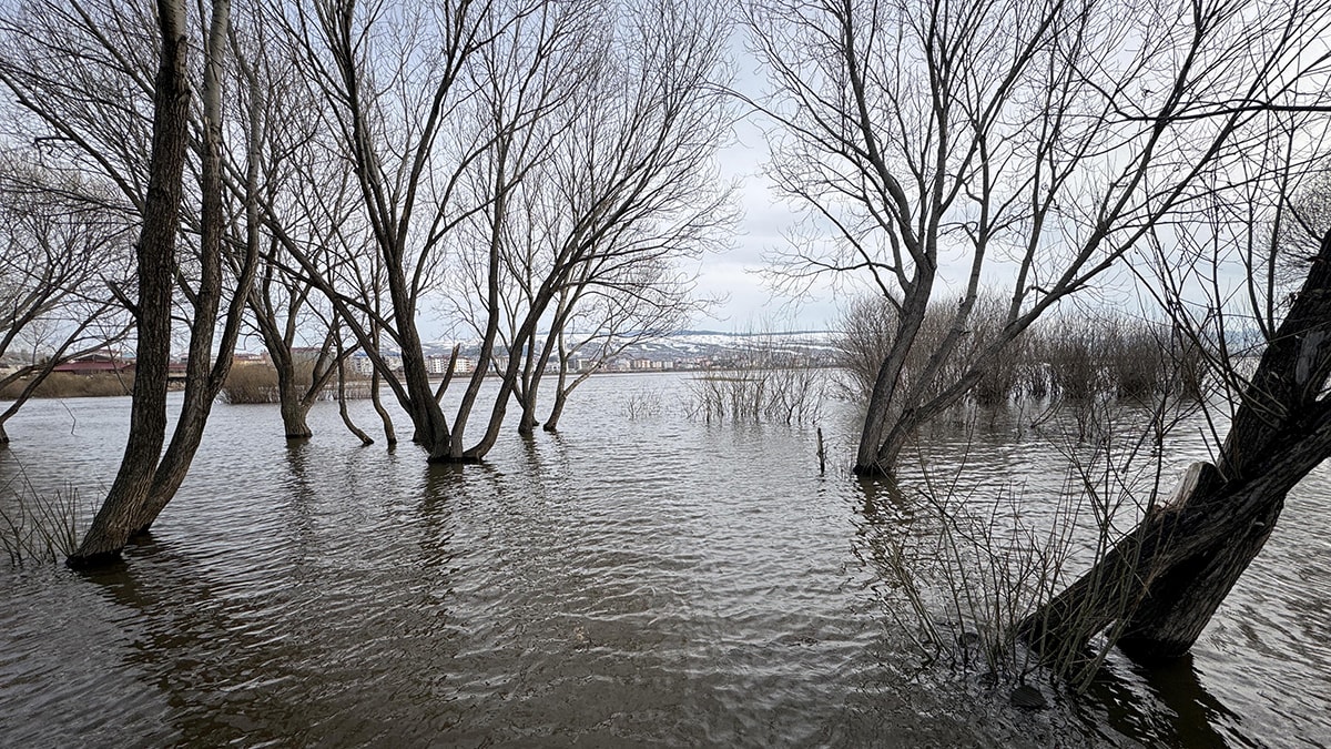Ardahan'da Kura Nehri eriyen kar birikintileri ve sağanak nedeniyle taştı Taşkın sonrası Ardahan Köprüsü ile Halil Efendi Mahallesi mevkileri göle döndü.