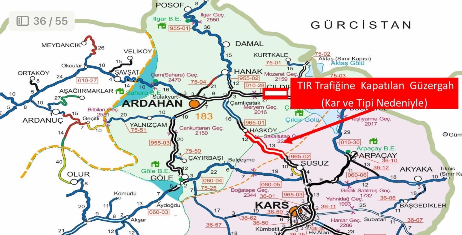 Ayrıca, Çıldır-Arpaçay kara yolunda da ağır tonajlı araçların geçişine izin verilmedi.