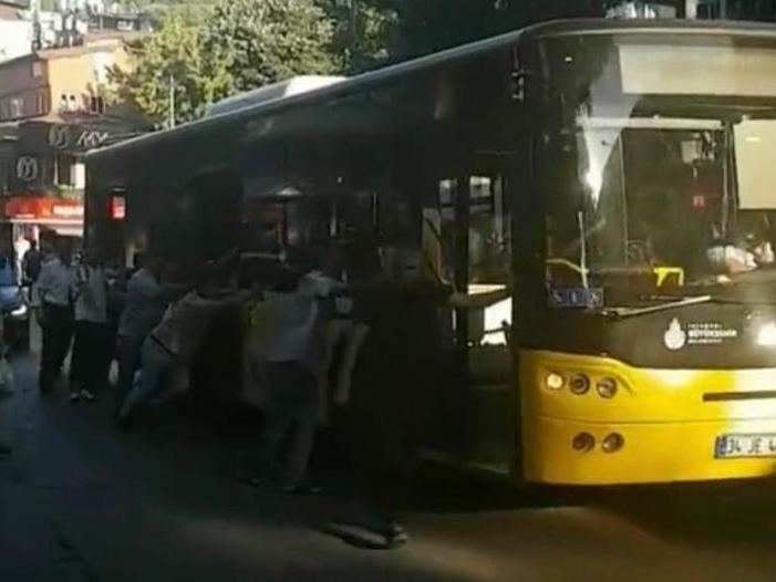 Olay öğle saatlerinde Çengelköy’de meydana geldi. İddiaya göre, güzergahında seyir halinde olan İETT otobüsü arızalanınca yolda kaldı. Motoru çalışmaya devam ettiği halde rampadan çıkamayan otobüs için yolcular harekete geçti. Bunun üzerine otobüsten inen yolcular hep birlikte İETT otobüsünü itmeye çalıştı. (İHA)