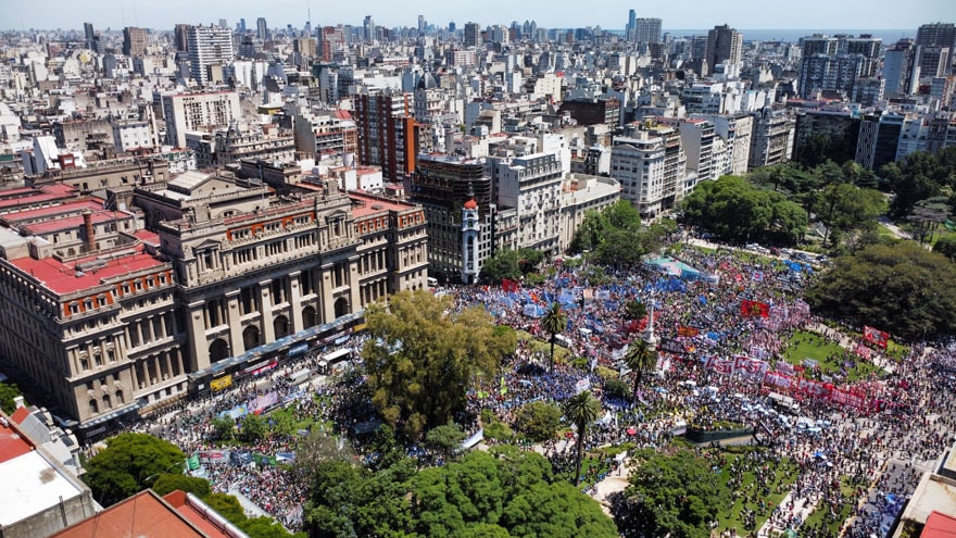 Başkent Buenos Aires'te, Genel İş Konfederasyonu (CGT) çağrısıyla bir araya gelen binlerce kişi, Milei hükümetinin ekonomi politikasını ve kuralsızlaştırma kararnamesine tepki gösterdi. Anayasa Mahkemesi Sarayı önünde gazetecilere açıklamada bulunan İşçi Sendikası Genel Sekreteri Gerardo Martinez, kuralsızlaştırma kararnamesine karşı olduklarını belirterek, "Başkan Milei'nin meşruiyetini sorgulamıyoruz ancak onun güçler ayrılığına saygı duymasını istiyoruz. İşçiler anayasal haklarını savunuyor." ifadesini kullandı.