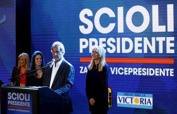 Yenilgiyi kabullenen Scioli ise Macri'yi telefonla arayarak tebrik etti. Scioli, destekçilerine hitabında, dünyaya bir demokrasi örneği gösterdiklerini, kampanya sürecinde kendisine destek verenlere teşekkür ettiğini belirtti.