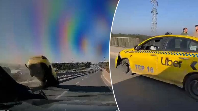 Trafik ışıklarında bekleyen araçlar, yeşil ışığın yanmasıyla birlikte hareket etmeye başladı. Bu sırada kavşağa hızlı giren ticari taksi, duramayarak orta refüje çarptıktan sonra yoldaki diğer araçların üzerine uçtu.