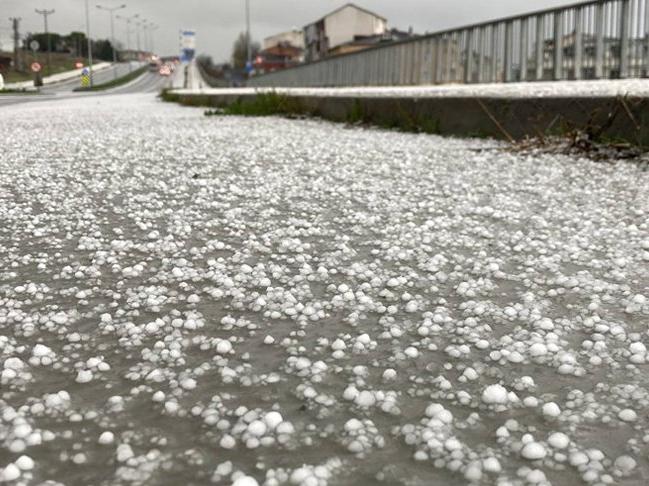 İstanbul Arnavutköy'de bir anda bastıran dolu cadde ve sokakları beyaza bürüdü.