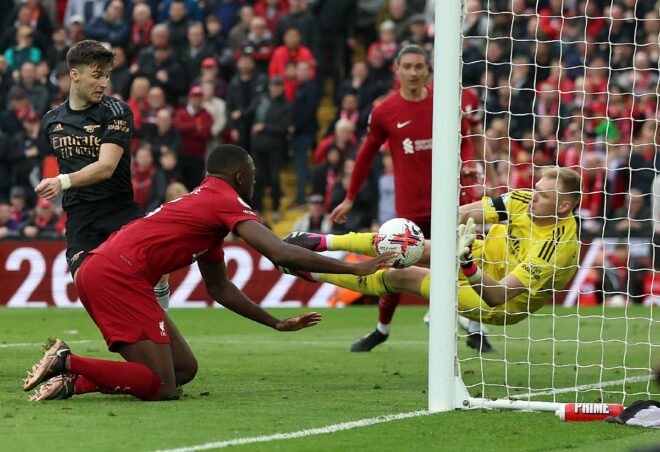 Büyük heyecana sahne olan maçın son anlarında Liverpool üst üste goller kaçırdı. 90+5'te ise Liverpool'un stoperi Konate'nin kaleye yarım metre mesafeden göğsüyle yaptığı vuruşu Arsenal kalecisi Ramsdale adeta uzayarak çizgiden çıkardı.