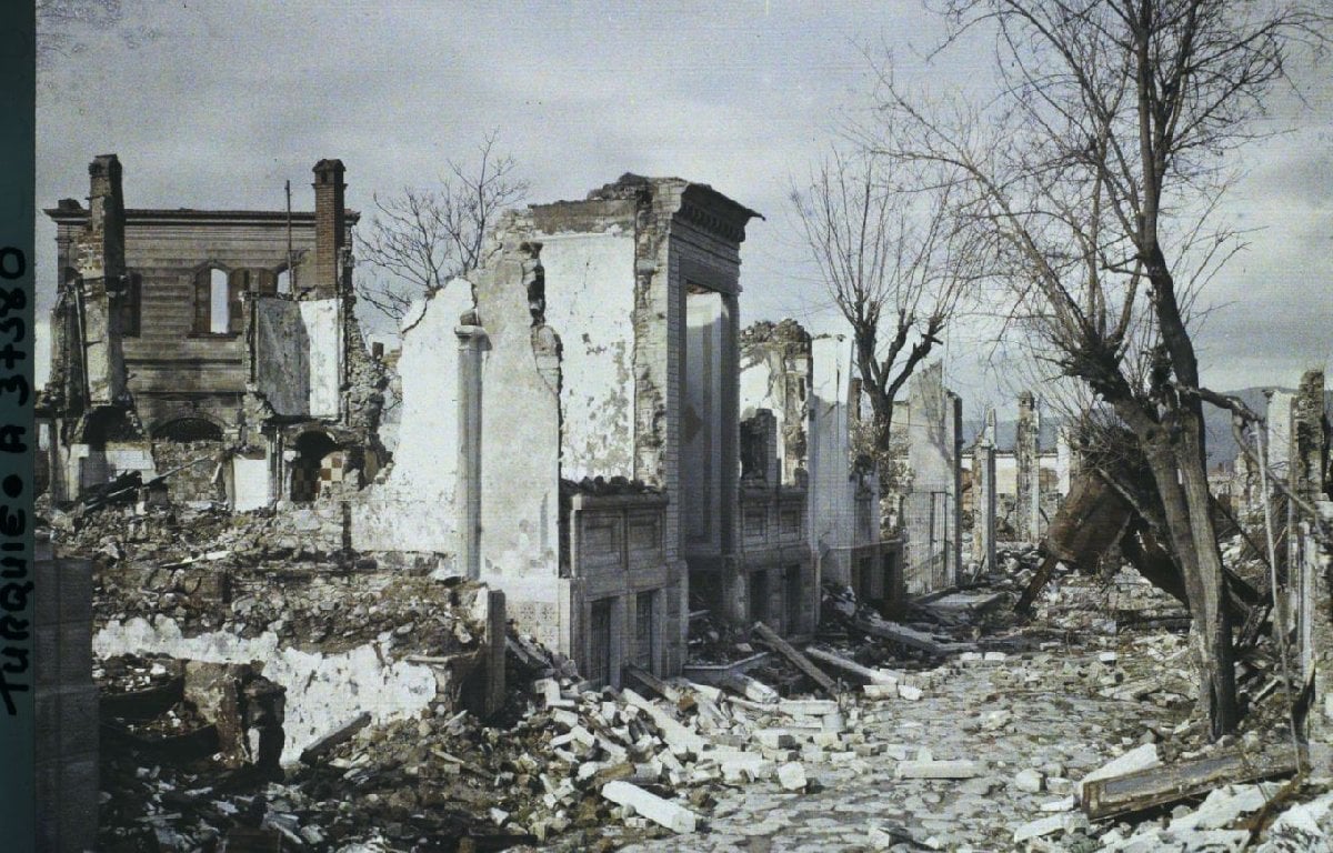 14 Ocak 1923'te çekildiği tahmin edilen görüntülerde Kurtuluş Savaşı sırasında düşmanların İzmir'e verdiği zarar görülüyor.