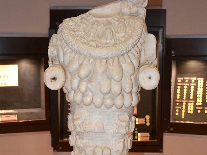 Sergilenen Artemis heykellerinden birinin, Efes Antik Kenti'nde 1956 yılında bulunduğu vurgulayan Müze Müdürü Topal, "Bu heykelin baş ve kol kısımları eksiktir. 1 metre 10 santimetre boyunda mermer malzemedendir. Elbisesinde arı gibi bereketi temsil eden hayvanlar bulunuyor. Omzunda ise aslan figürleri mevcut" diye konuştu. (DHA)