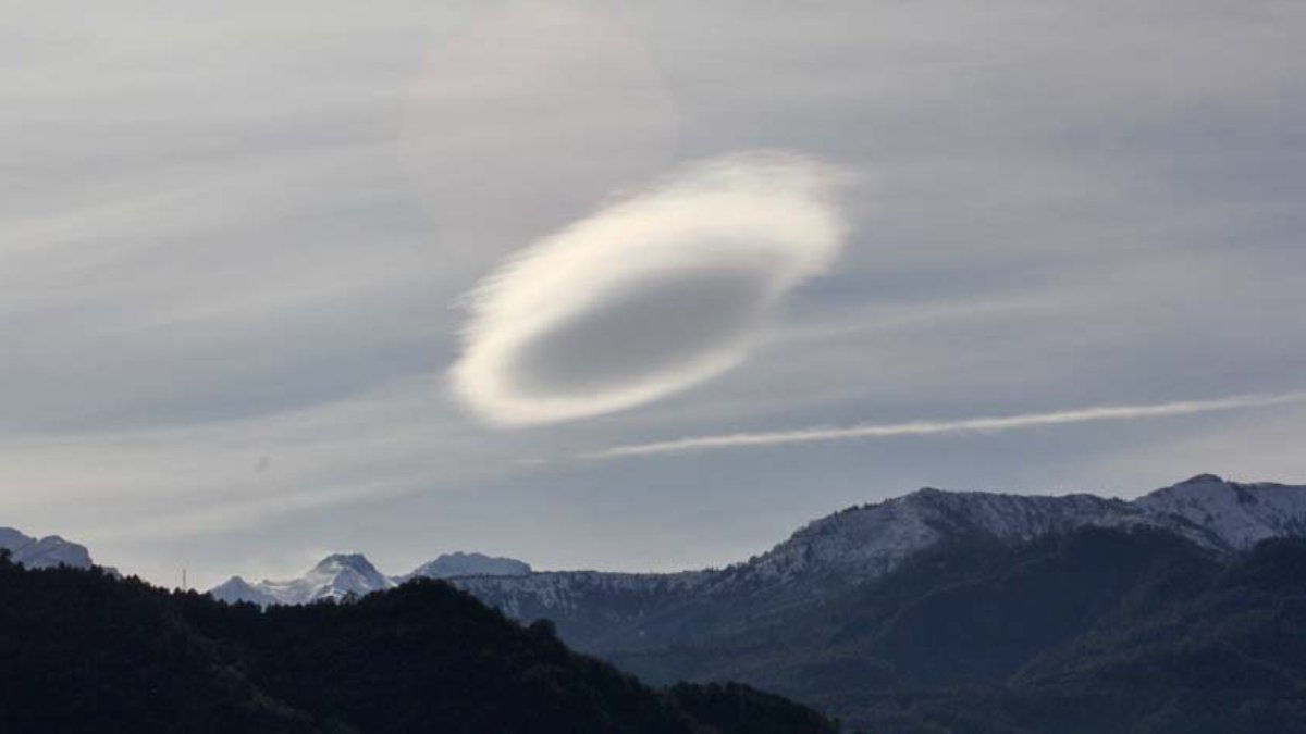 Havanın içindeki nem oranı yeterince yüksekse, yukarı ve aşağı yönlü hava hareketi sırasında basınç ve sıcaklık değişiminden dolayı su buharı yoğunlaşıp tekrar buharlaşıyor, böylece mercek şeklindeki bulut meydana geliyor. (AA)