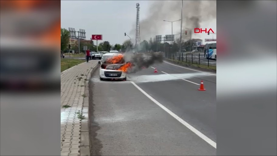 Karakoç da aracı emniyet şeridine park edip, kaputu açık bakmak isterken alevler yükseldi. Bunun üzerine Karakoç ve yanındaki mesai arkadaşları araçtan uzaklaştı.