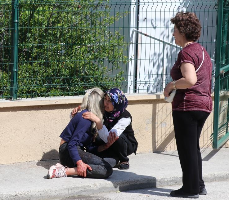 Evin önünde gözyaşı döken Çardak'ın torunu ve eşini, yakınları ve komşuları teselli etmeye çalıştı. (AA)