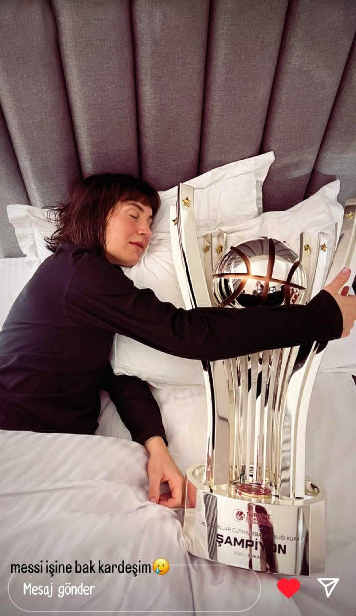 Mücadele sonrası Çukurova Basketbol Kulübü Mersin Yenişehir Belediyesi oyuncularından Asena Yalçın'ın sosyal medya hesabından paylaştığı fotoğraf beğenileri topladı. Asena Yalçın, otel odasında kupa ile uzandığı yataktan çektirdiği fotoğrafı, "Messi işine bak kardeşim" notu ile paylaştı.