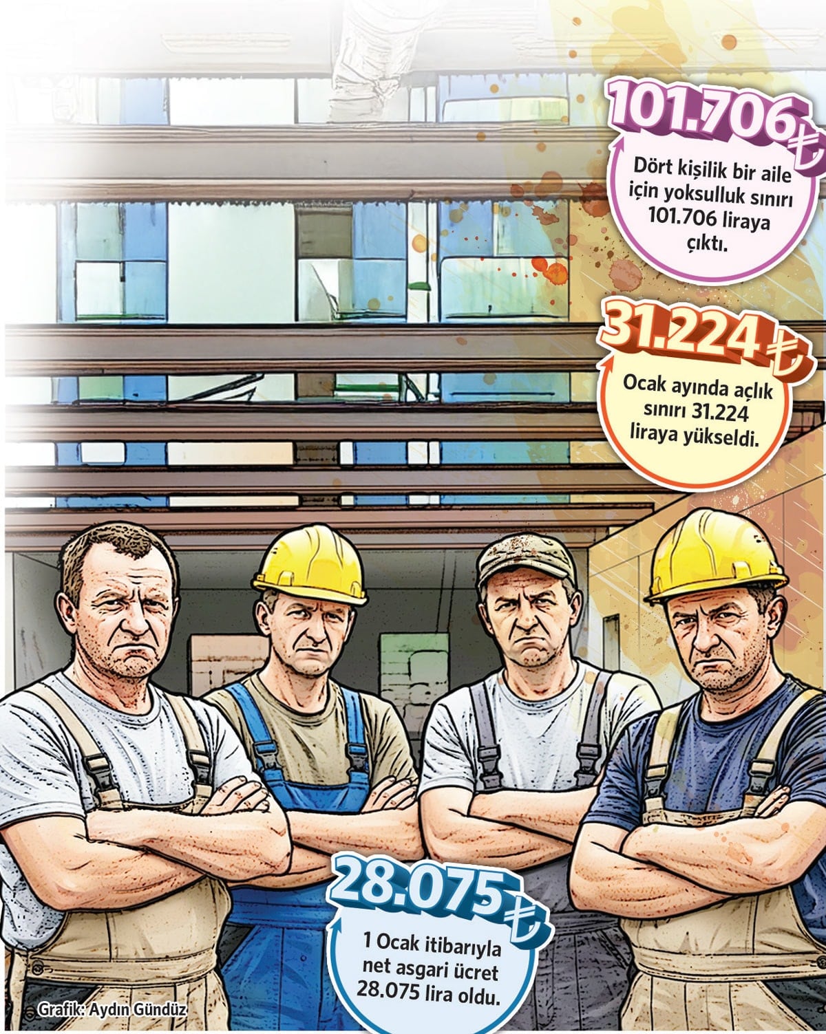 Türk-İş açıklamasında, asgari ücretin insan onuruna yaraşır bir yaşamı karşılamaktan giderek uzaklaştığı vurgulandı. Açıklamada, açlık ve yoksulluk sınırı ile elde edilen gelir arasındaki farkın büyümesinin geçim sıkıntısının boyutlarını açıkça gösterdiği ifade edildi. Öte yandan ocak ayında resmi enflasyon oranının da yüzde 4 ile 5 arasında gelmesi bekleniyor. Türkiye İstatistik Kurumu, ocak ayı enflasyonunu 3 Şubat Salı günü açıklayacak. Enflasyonunun yükselmesi dar gelirli vatandaşın hayatını daha da zorlaştıracak.