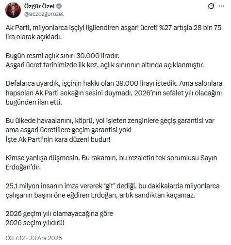 ÖZGÜR ÖZEL: "2026 SEFALET YILI"