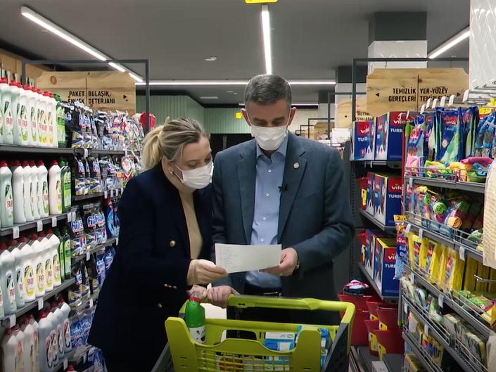 Geçen yıl 'milletin enflasyonu’nu market ve pazar gezerek hesaplayan İYİ Parti Genel Başkan Yardımcısı Ümit Dikbayır, bu kez de 'milletin geçim derdi' çalışması yaptı. Biri küçük diğeri de liseye giden öğrenci çocuğu olan asgari ücretli ailenin giderlerini hesaplayan Dikbayır, kalan parayla da market alışverişi yaptı.