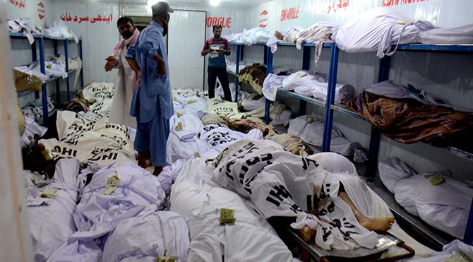 Kentteki büyük hastanelerin tüm morglarının dolu olduğu öğrenilirken, son olarak 700 olan ölü sayısı hastane kaynakları verilerine göre 900'e yükseldi. Karaçi'deki hastane yetkilileri, sıcaklardan etkilenen bin 500 kişinin tedavi altında olduğunu, hastanelerde yer kalmadığını duyurmuştu.