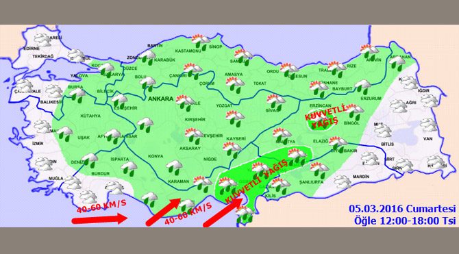 Hava sıcaklığı kuzey ve iç kesimlerde 2-6 derece azalacak, diğer yerlerde önemli bir değişiklik olmayacak. Rüzgar ise genellikle güney ve güneybatı yönlerden hafif, ara sıra orta kuvvette, Akdeniz, İç Anadolu'nun doğusu ve Karadeniz'in iç kesimlerinde kuvvetli, Doğu Akdeniz'de yer yer kısa süreli fırtına şeklinde esecek.
