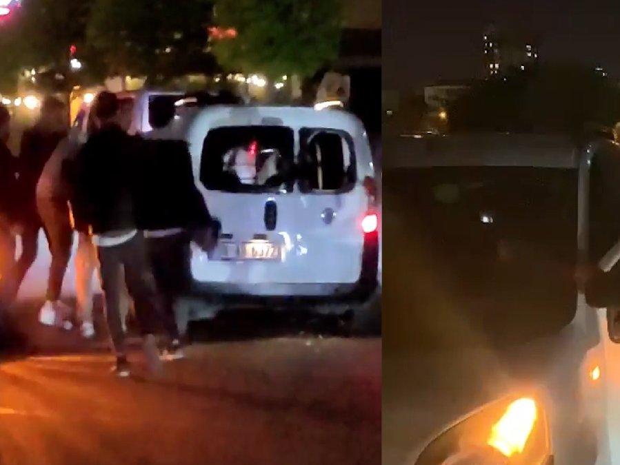 Bir süre sonra tekrar gelen sürücü, aracını kalabalığın üzerine sürmeye çalıştı. Ortalık bir anda karışınca sürücü olay yerinden kaçmaya çalışırken 2 araca çarpıp durdu. Aracın peşinden giden kalabalıktakiler, alkollü olduğu iddia edilen sürücüyü öldüresiye döverken kullandığı hafif ticari aracı taşlayıp teklemedi.
